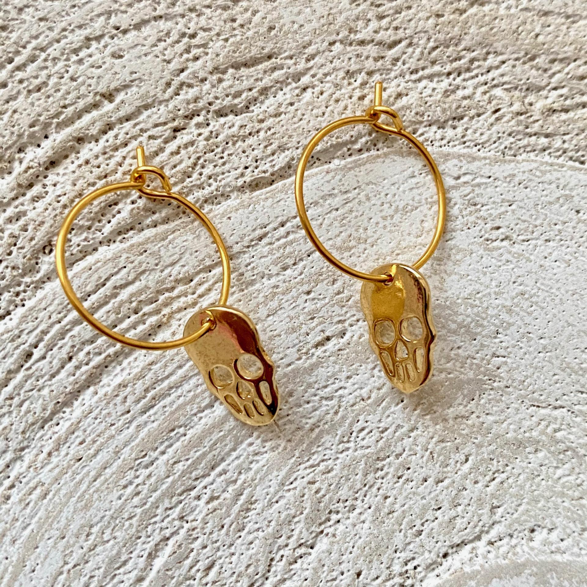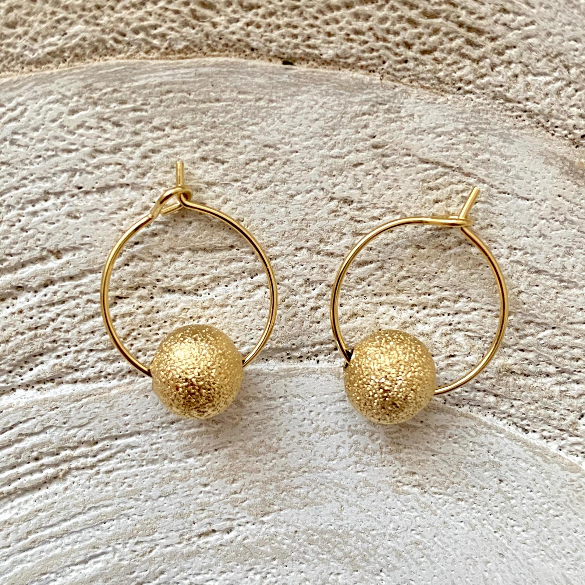 Mini créoles de 15mm de diamètre en plaqué or avec un pendentif:
